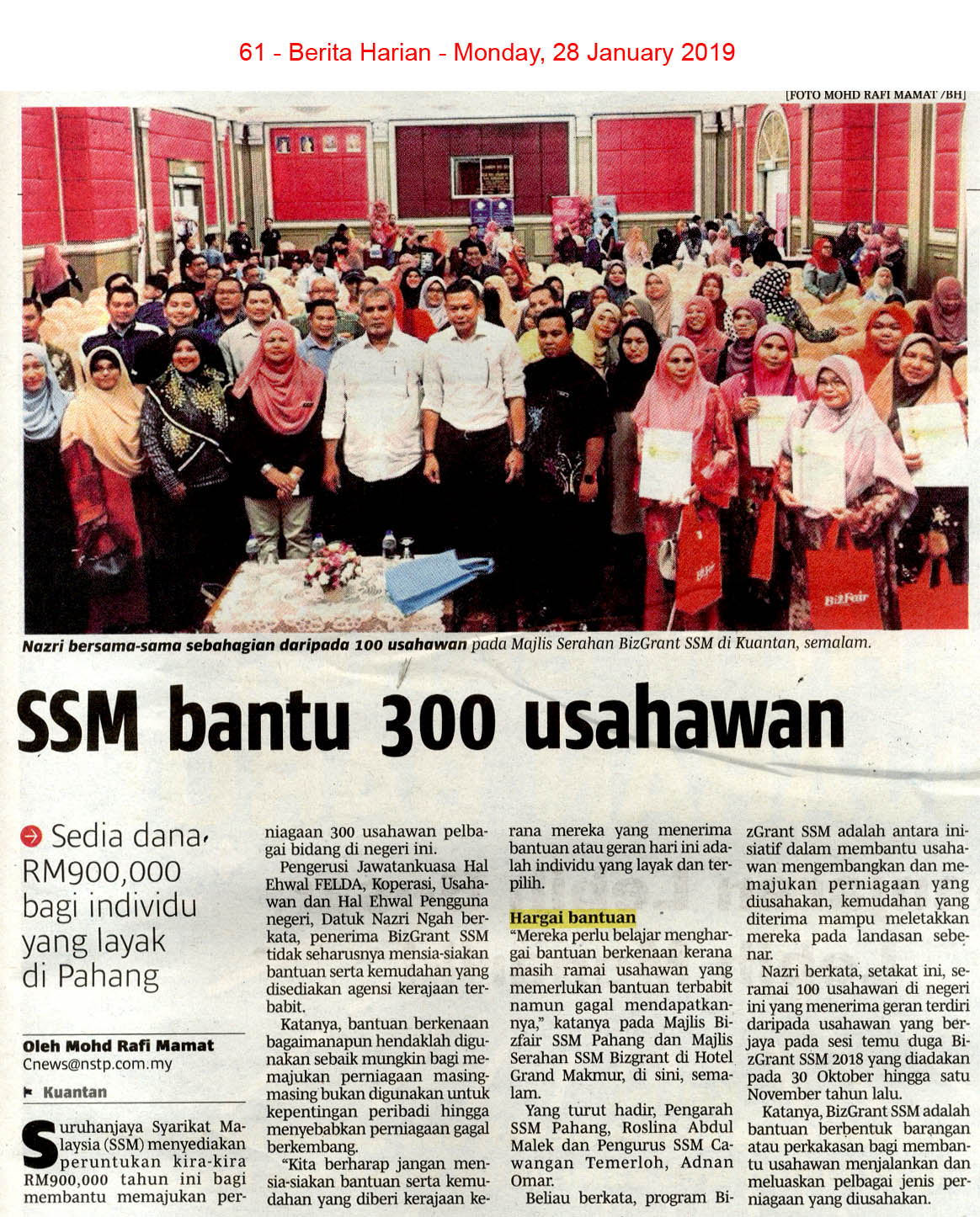 Anda dikehendaki membentuk satu kumpulan yang terdiri daripada 34 orang. Oleh itu di bawah ini kita akan bercakap sedikit mengenai elemen penting dalam rancangan perniagaan untuk usahawan. Selain itu kerajaan juga menyediakan RM5 juta.